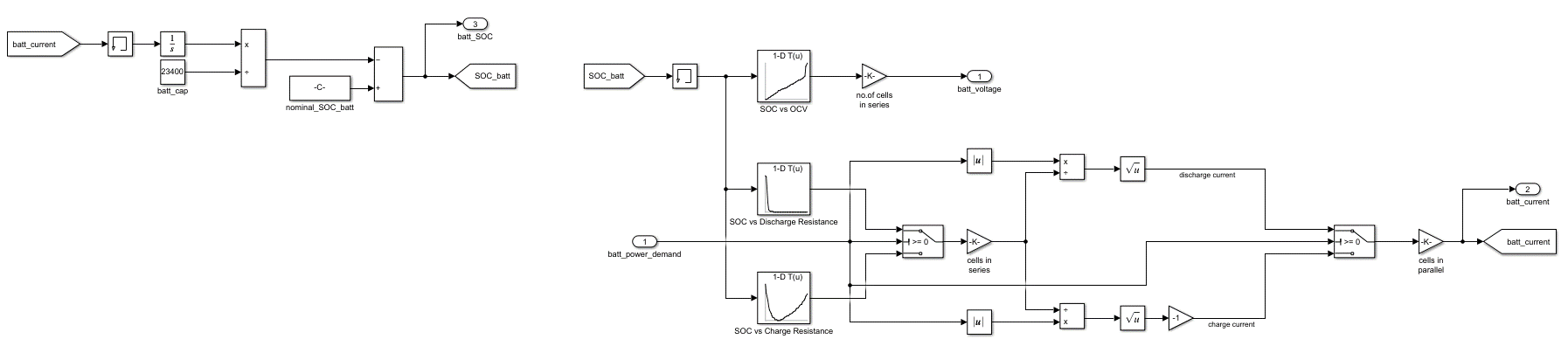 Battery (above) and Ultracapacitor (figure below) have been modelled using their governing equations — State of Charge, Current, Voltage, etc.